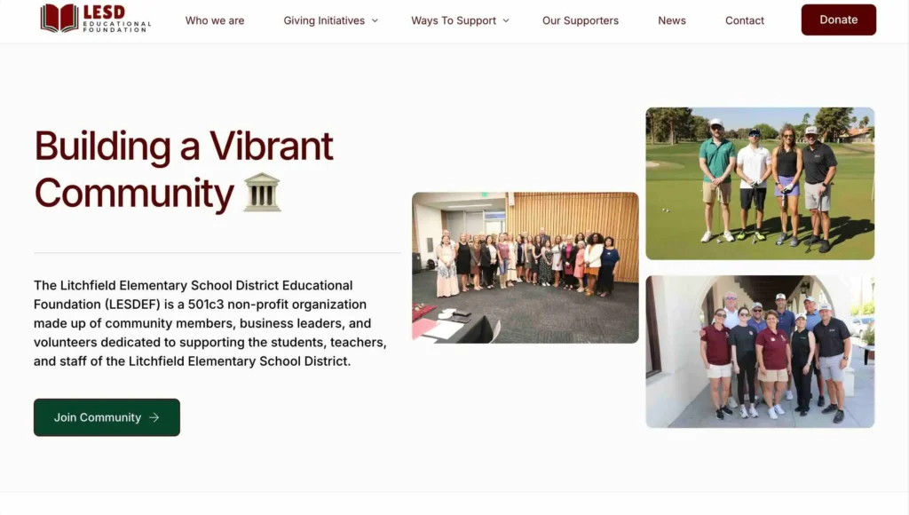The Litchfield Elementary School District Educational Foundation (LESDEF) is a 501(c)(3) non-profit that supports the students, teachers, and staff of the Litchfield Elementary School District. The organization needed a fresh digital presence that was clean, professional, and community-driven—with a user-friendly website and a modern logo that reflected its mission and values.